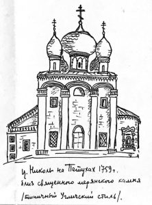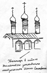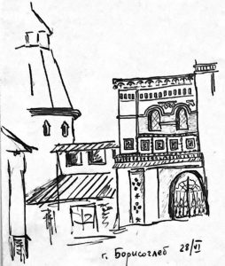 <…> более нужна, что мы посещали места, связанные с «цветущим» XVII веком русского искусства. Во всяком случае, все основные памятники архитектуры и живописи относятся (Ростов, Борисоглеб, Ярославль, Кострома) к этому времени.