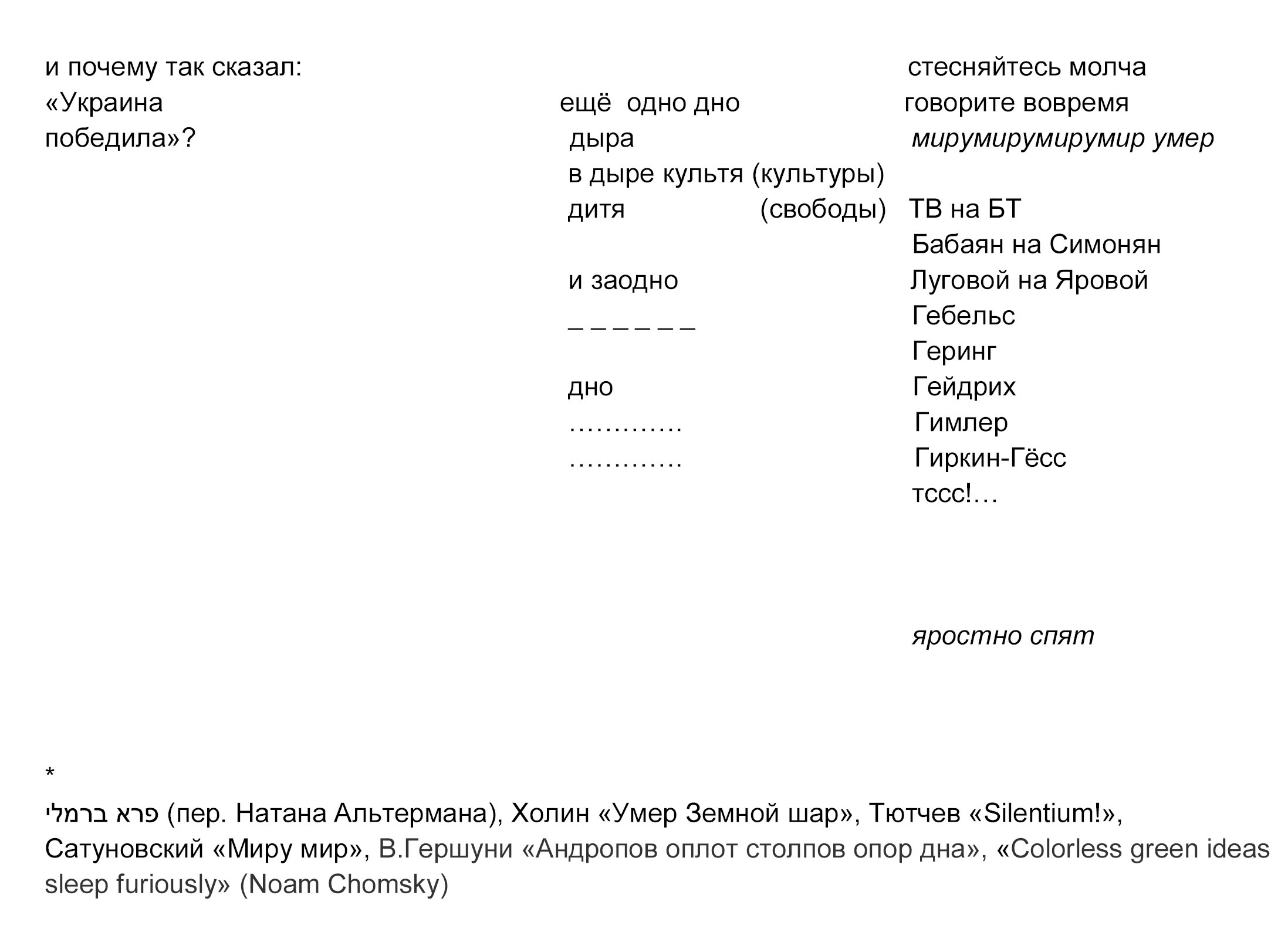 Posted inРАЗНОЕ №66 СТИХИ Posted by By Nostromo 8 октября 2025No Comments Михаил Сухотин Share via: Facebook Twitter LinkedIn More Nostromo View All Posts Post navigation Previous Post №66 СТИХИNext PostАндрей Костинский